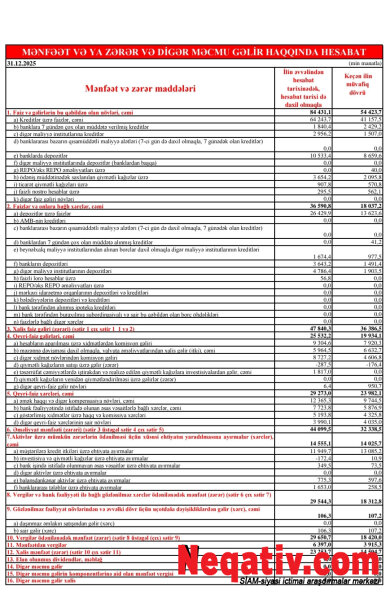 Analitik Araşdırma: Mənfəət hər şey deməkdirmi?Bankın 4-cü rüb üzrə xalis mənfəəti illik müqayisədə 14,5 milyon manatdan 23,2 milyon manata qədər yüksəlib. Bu, ilk baxışdan böyük uğur kimi görünə bilər, lakin iqtisadi nöqteyi-nəzərdən bu mənfəətin "qiyməti" olduqca ağırdır.