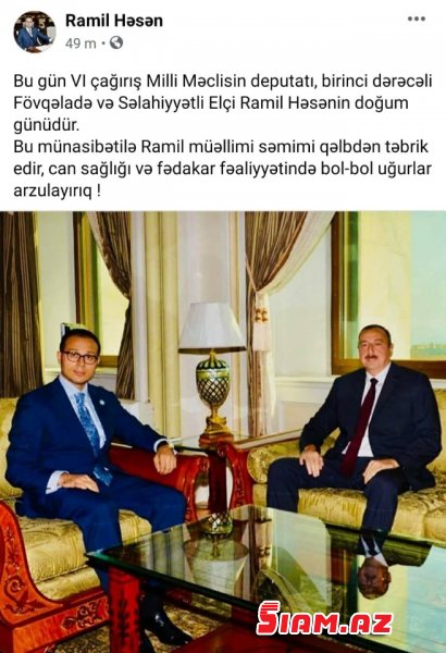 91 saylı Ucar seçki dairəsindən deputat seçilmiş Ramil Həsənin sosial şəbəkədəki paylaşımı gülüş doğurub.