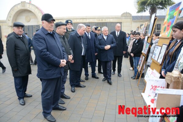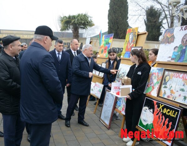 Mərasim iştirakçıları əvvəlcə ümumtəhsil məktəbləri şagirdlərinin Xocalı faciəsinin ağrı-acısını və xalqımızın qəhrəmanlıq ruhunu əks etdirən rəsm və əl işlərindən ibarət sərgiyə baxış keçiriblər. Daha sonra Şəhidlər Abidə Kompleksinin önünə tər çiçəklər düzülərək, soyqırımı qurbanlarının və Vətənimizin müstəqilliyi uğrunda canlarından keçmiş şəhidlərimizin əziz xatirəsini dərin ehtiramla anıblar.