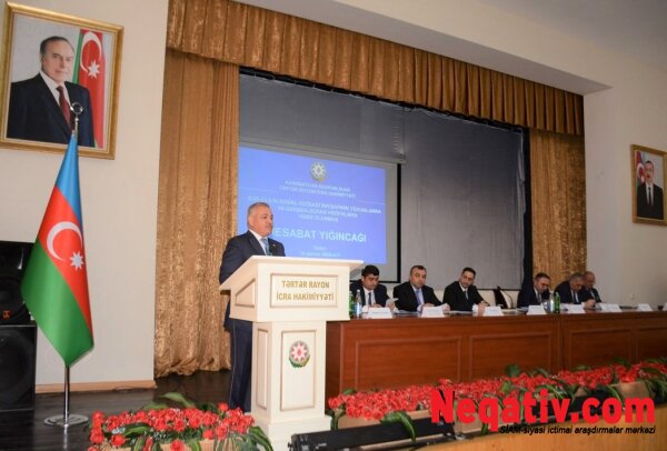 Yığıncaqda Tərtər Rayon İcra Hakimiyyətinin başçısı Müstəqim Məmmədov hesabat məruzəsi ilə çıxış edib. Rayon rəhbəri 2026-cı ilin tərtərlilər üçün yaddaqalan tarixi hadisə ilə başladığını, yanvar ayının 13-də Azərbaycan Respublikasının Prezidenti cənab İlham Əliyevin 48 il öncə Ümummilli Liderin açılışını etdiyi Tərtər Eletromexanika zavodunda aparılan geniş yenidənqurma işlərindən sonra zavodun açılışını etdiyini bildirmiş, dövlət başçısının rayonda yerləşən hərbi təyinatlı sənaye obyektinə göstərdiyi bu diqqət və qayğının rayon ictimaiyyətinin əhval ruhiyyəsini daha da yüksəltdiyini, insanlarda sabaha inamı, görülən işlərə güvəni və yeni inkişaf mərhələsinə keçid əzmini daha gücləndirdiyini qeyd etmişdir.