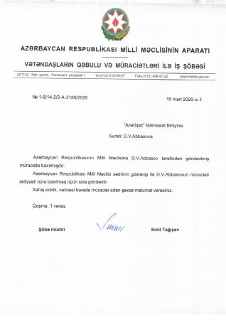 3. Milli Məclis – müraciətə cavab verib.
